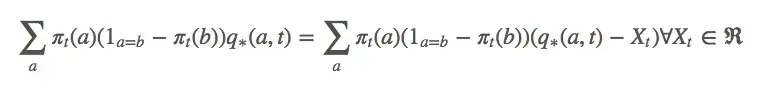 这个等式表示的是无论何时,如果我们选择动作 ,我们获得的实际回报就应该等于动作