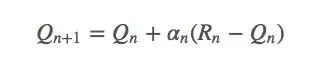 注:上文中的回报(reward)和动作值(value)不是同一个概念。回报指的是执行动作后的当场回报,动作值是一个长期的回报。如果你吸毒了,一小时内你很high,回报很高,但长期来看,你获得的动作值就很可怕了。需要注意的是,因为老虎机只需要一个动作,所以这里的 不是未来回报之和,只是期望回报,它和其他地方的